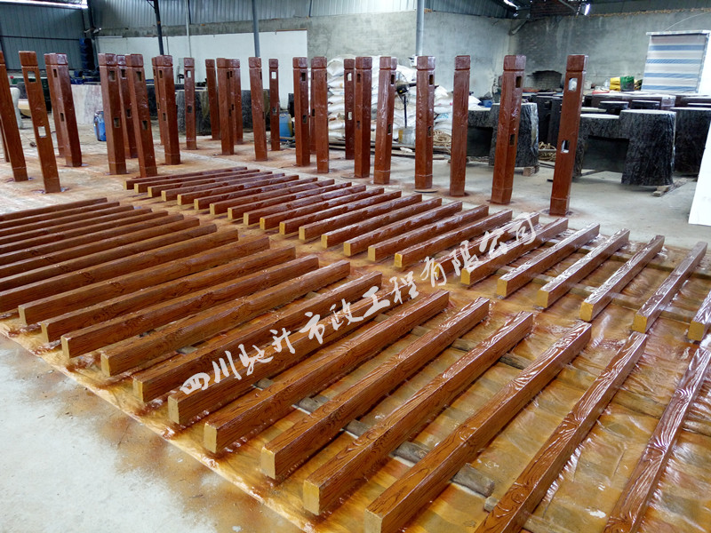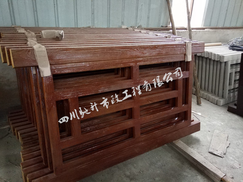 2016年10月,我司承接的甘肅省隴南市文縣碧口鎮農家樂仿木欄桿:《兩橫兩豎仿木欄桿》、《梯形仿木欄桿》、《中式仿木欄桿》。